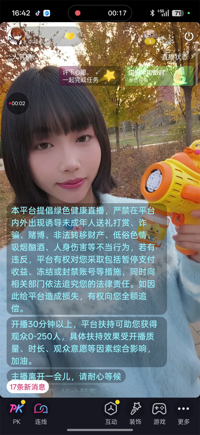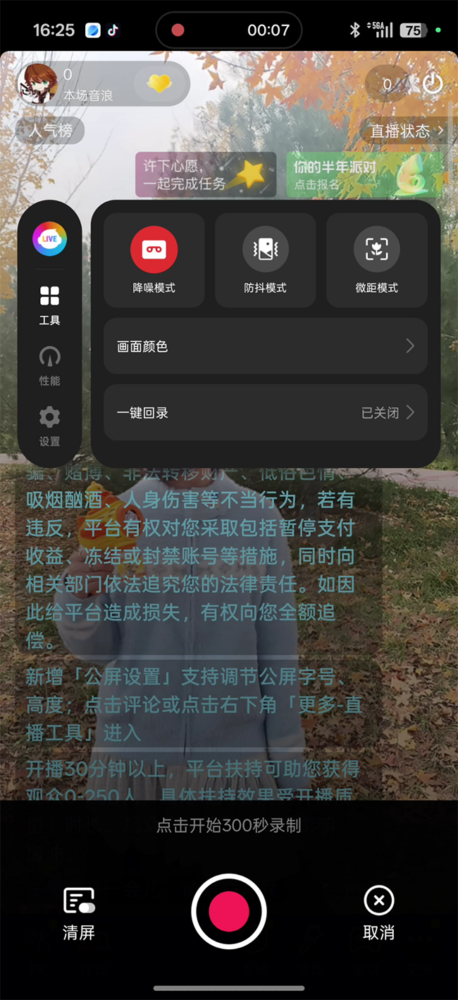 我使用前置镜头直播的时候,可以把我的妆容、面容、发丝的细节展示非常清晰,前置镜头也支持自动对焦,运动的时候画面也不会模糊。拍摄视角达到了100°,比其他手机前置镜头更广,可以把深厚背景元素很好地容纳进去。