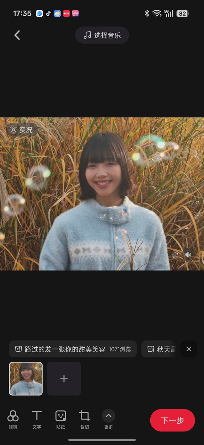 出圈另外一个含义就是能拍摄出圈实况拼图,操作方法也超简单。你只需要按“景色在上、人像特写居中、全身照在下”的顺序选好三张图,轻轻点击中间那张最美的特写,再选择“出圈”选项,瞬间就能让你的人像优雅地融入上方景色中,需要注意的是,人像和景色最后颜色对比强烈一些,这样画面会更有冲击感。