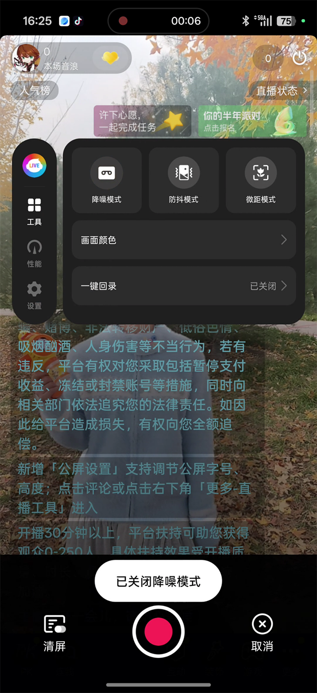 OPPO Reno15 Pro拥有三麦克风,再配合自研降噪算法,即使在户外直播也拥有非常好的收音效果,可以听见周围的噪声得到了很明显地抑制,我说话的声音很清晰。