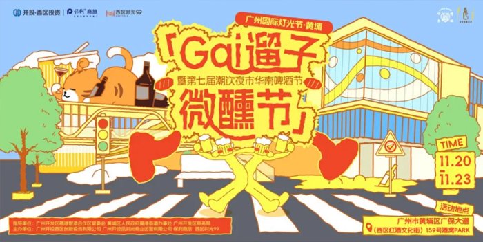 西区红酒文化街于11月20日至23日举办「广州国际灯光节・黄埔 Gai 遛子微醺节 —— 暨第七届潮饮夜市华南啤酒节」,集精酿市集、篮球赛事、灯光艺术与互动音乐于一体,汇聚全国30余家精酿品牌、120余款特色酿造,打造一场集味觉、视觉与体验于一体的潮流欢聚。