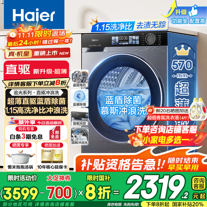 海尔追光系列10kg滚筒洗衣机