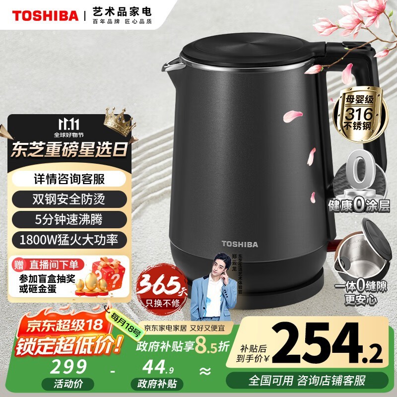 东芝KT - 17DRTC电热水壶,大容量温控,到手仅299元