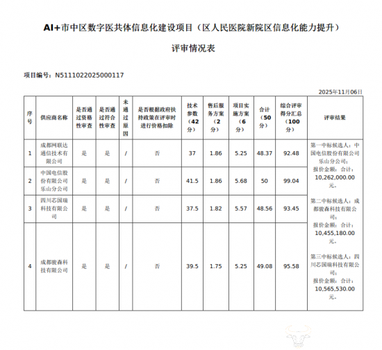 此外,在技术参数评比上,乐山电信拿下了最高分,这也是他们此次能够中标的关键因素。