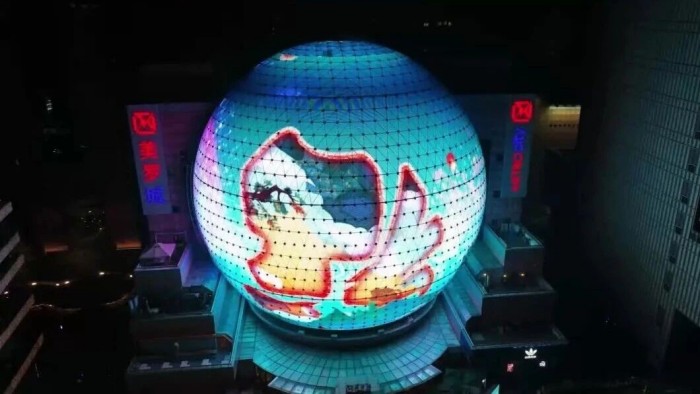 上海美罗城水晶球是迈锐光电又一经典案例,引入裸眼3D球幕技术,这一创新融合了科技和文化,为游客带来了沉浸式体验。令人叹为观止的裸眼3D激光秀瞬间点燃了整个商圈的激情。
