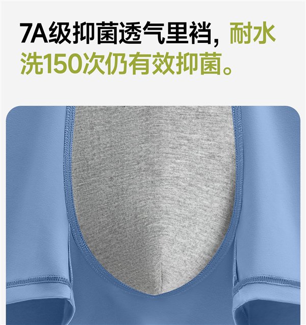7A级抑菌,柔软亲肤,轻薄透气,人体工学裁剪,不夹PP,高弹松紧腰。