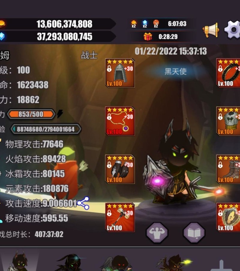 攻速9是狂暴战士的关键分界点,其他属性选择较为明确,不再赘述,直接附上我的装备配置图供参考。