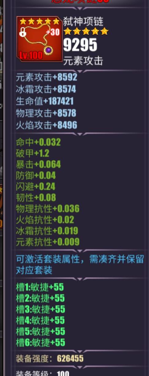 恶龙项链在传统紫龙加攻速基础上,新增破甲属性,剩余属性点可提升敏捷,全面提升命中、暴击、攻速与韧性,战斗力更均衡强劲。