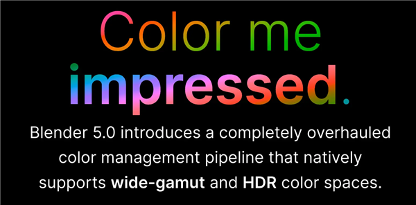 Blender 5.0的核心更新是全新的色彩管理管线,原生支持广色域和HDR图像与视频的显示和导出。