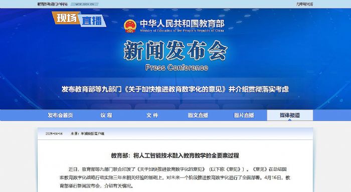 (教育部等九部门联合印发《关于加快推进教育数字化的意见》)