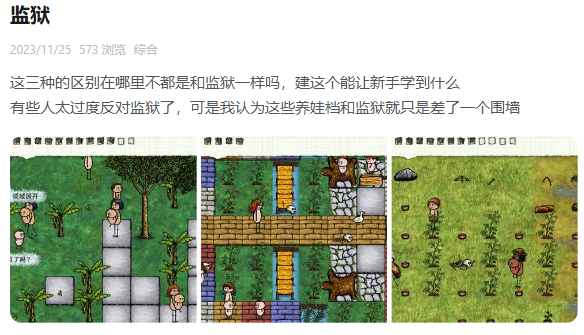 在这条生与不生之间的灰色地带,最具争议性的当属玩家自行设计建造的一类建筑,常常被称为“监狱”,管理“监狱”的则自称“典狱长”。