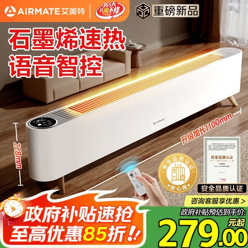 艾美特石墨烯踢脚线取暖器 SR79,优惠价 599 元速抢!