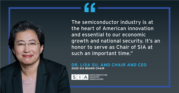 SIA总裁兼CEO John Neuffer表示:“在半导体行业充满机遇与关键挑战的当下,我们非常荣幸欢迎苏姿丰博士担任SIA主席。数十年来,苏姿丰博士不断推动半导体创新的边界,是行业内极具影响力的领军人物。”