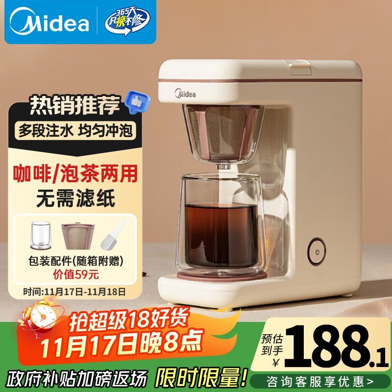 美的204M美式咖啡机,到手仅179元!