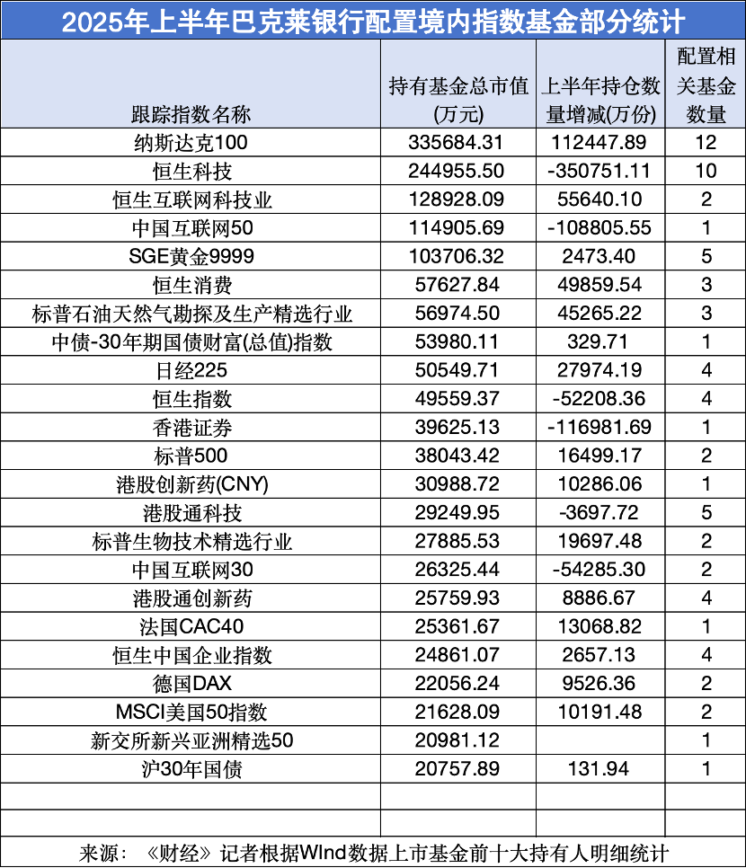 数据显示,2020年中巴克莱仅持有3只基金,总规模9亿元,其中八成以上是货币基金。到了2025年中,巴克莱持有的中国公募基金增长至200只,总持有市值增至192.5亿元。ETF是其核心配置工具,符合国际资管机构对低成本、高透明、高流动性工具的偏好。