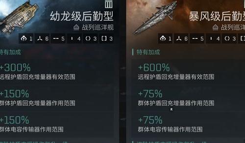 对于已达到T9的后勤玩家,可选的后勤战巡包括暴风与幼龙(侧重护盾恢复),以及先驱和布鲁提克斯(侧重装甲修复)。本文主要针对当前主流的护盾型编队,介绍相应的后勤舰船选择及装配思路。