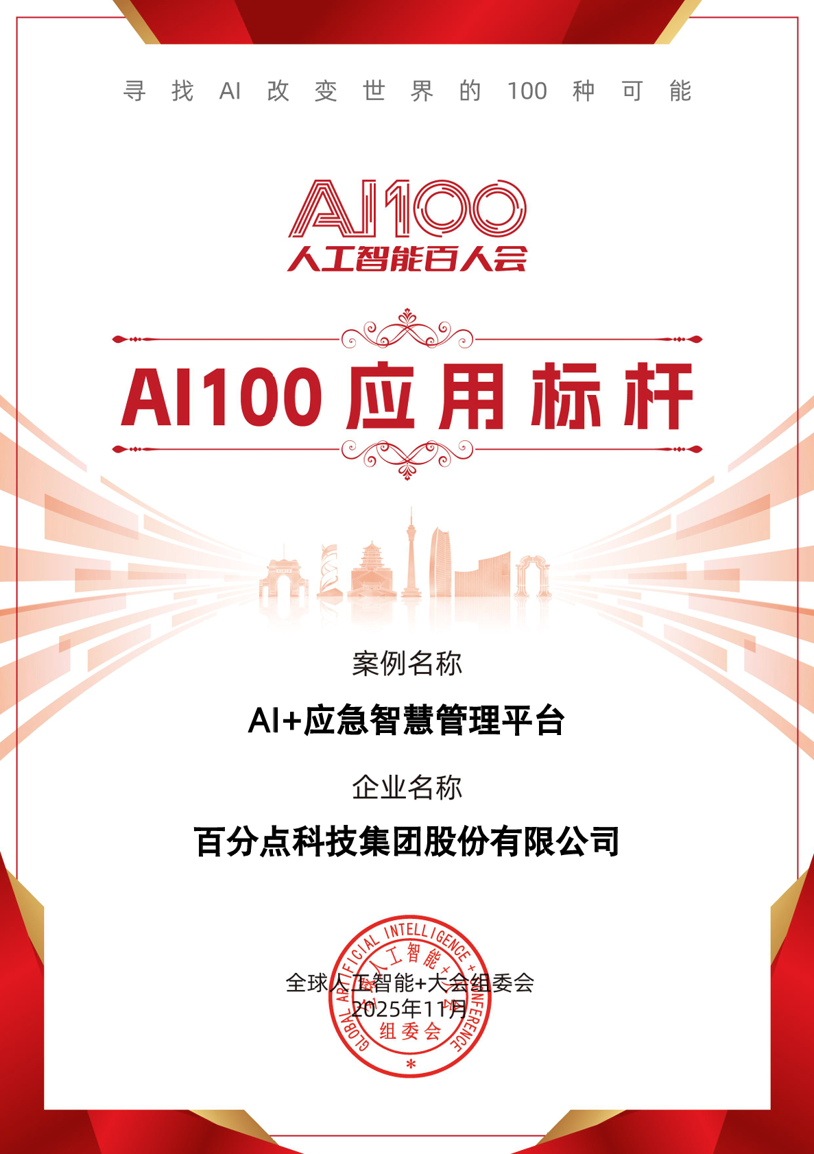 近日,以“AI下一个十年:场景驱动×新质引擎”为主题的2025人工智能+大会在北京举办,本次大会由国家高新区人工智能产业协同创新网络、赛迪研究院人工智能研究中心、中关村发展集团等联合主办。大会现场发布了“AI100应用标杆”榜单,百分点科技“AI +应急智慧管理平台”从1,000多家企业案例中脱颖而出,入选榜单。