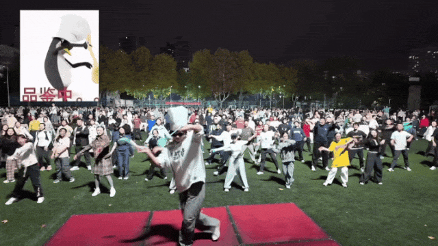 大学生们顺势将狂欢拉到线下,西安交大2000余人在操场齐跳改编版企鹅舞,连领舞者都挥着锅铲带队,把解压玩成了热血团建!