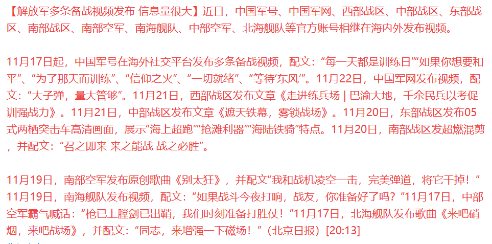 这一幕有点像当年佩洛西访台时的情况,我们的战术战略都是有深层意义的,而且,从近期一系列的动作来看,我们肯定要在这一场博弈中拿到一些好处的,不然,不会搞这么大阵仗,当然,你说热战的可能性,老赵只能说很低很低,即便真有战场也只可能在海域或者本子国内,对国内的冲击会非常低。
