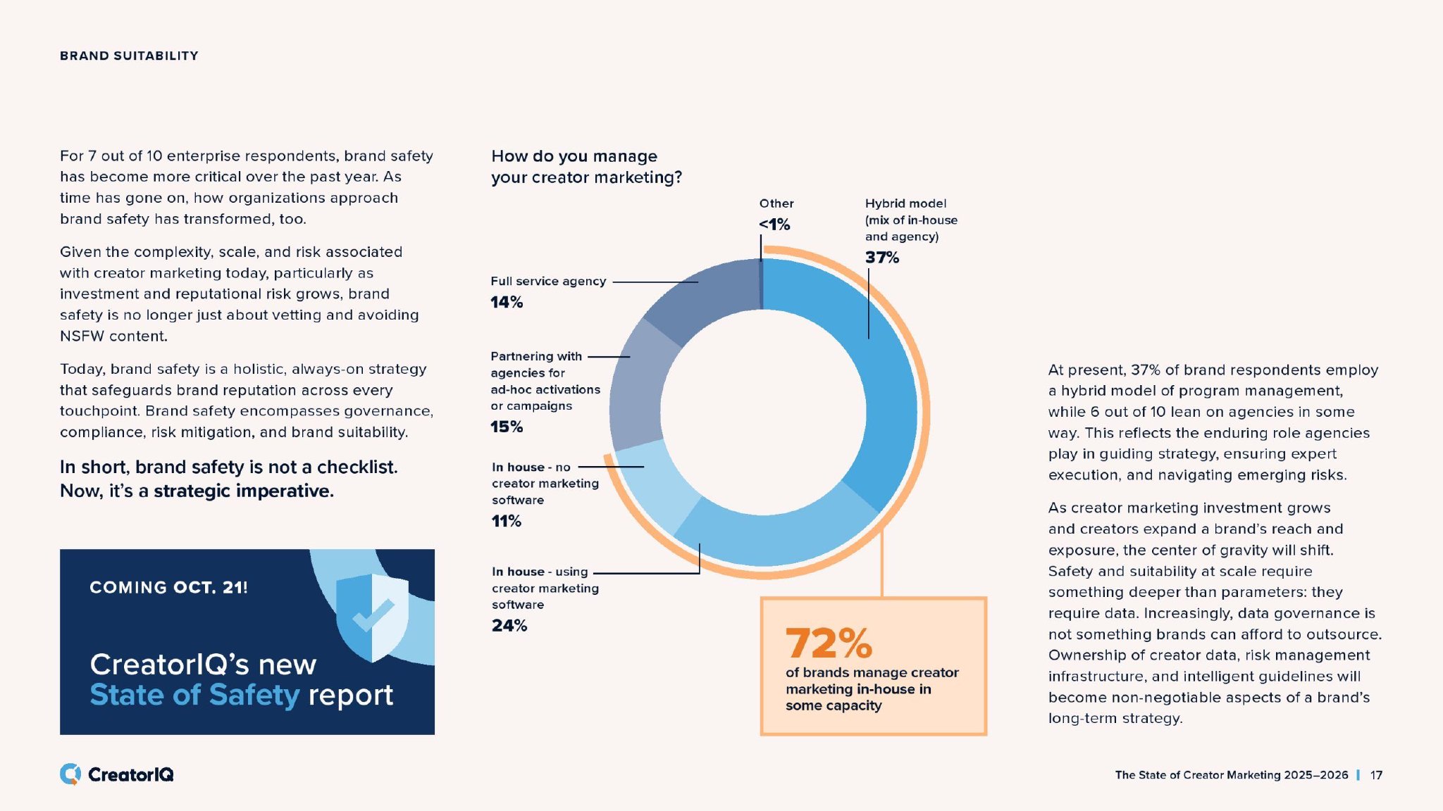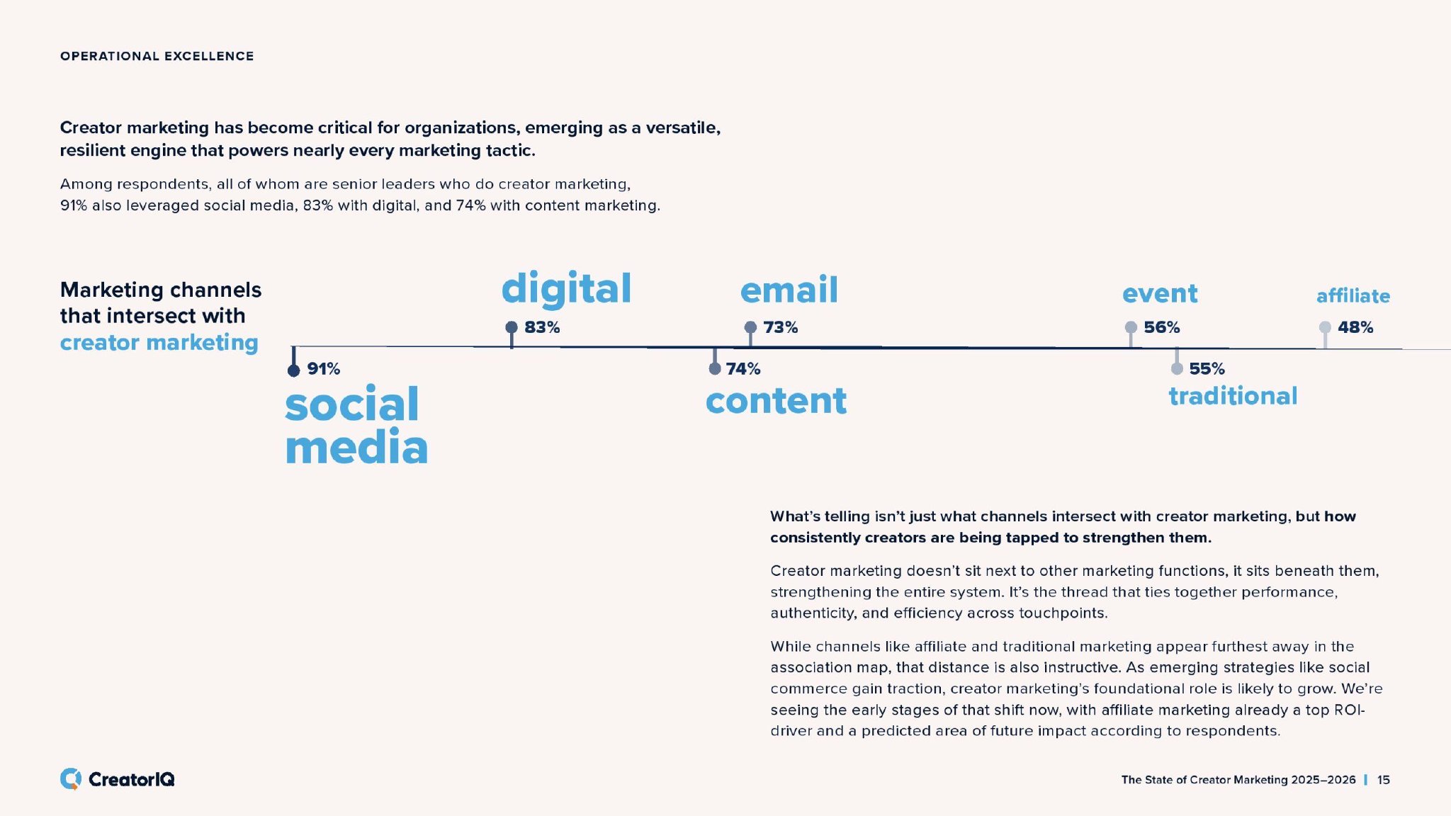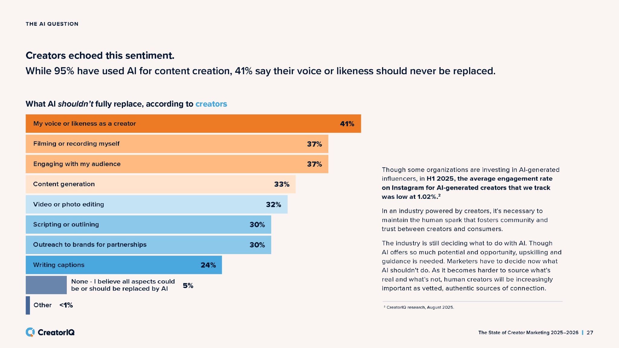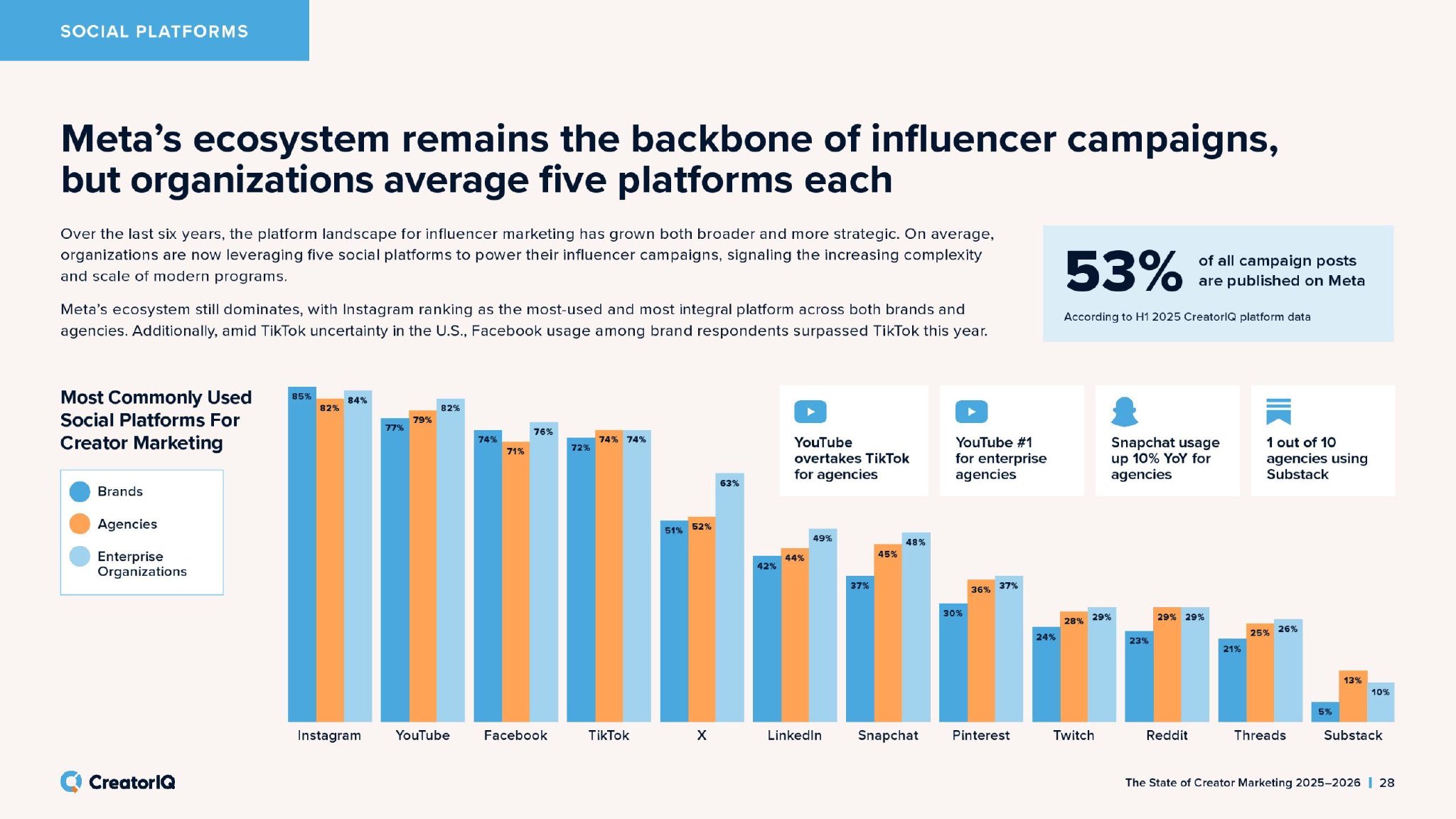 越来越多的首席营销官——如今比例已超过九成(91%)——认同品牌营销将更多地转变为品牌、创作者和平台之间的合作伙伴关系。根据CreatorIQ的一份报告,随着意见领袖合作模式不断发展以满足品牌需求,一个战略转变已经发生:”该行业长期以来对粉丝数量的执着正式宣告终结。”