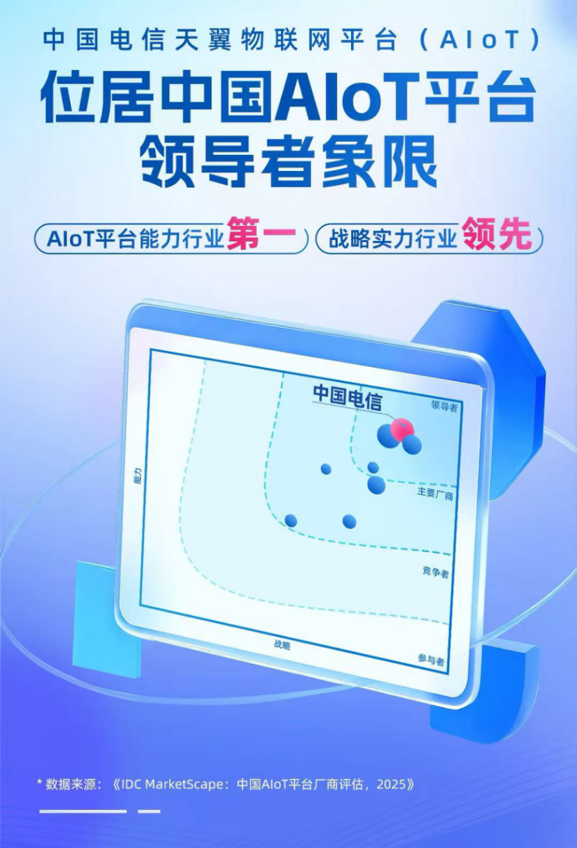 值得一提的是,2025年,中国电子学会组织院士专家对中国电信天翼物联网平台(AIoT)开展科技成果鉴定。与会专家一致认为,该成果技术复杂度高,研制难度大,创新性强,核心关键技术自主可控,整体达到国际先进水平,其中超大规模泛在物联网连接智能感知与控制、海量异构物联网终端智能接入与多维数据解析技术达到国际领先水平。