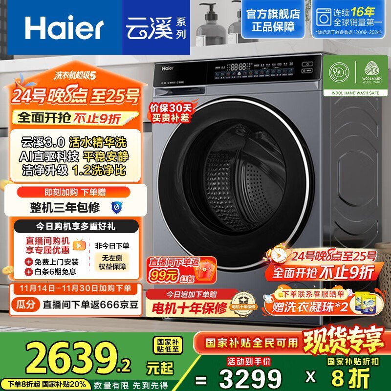 海尔云溪3.0洗衣机10kg直驱钜惠