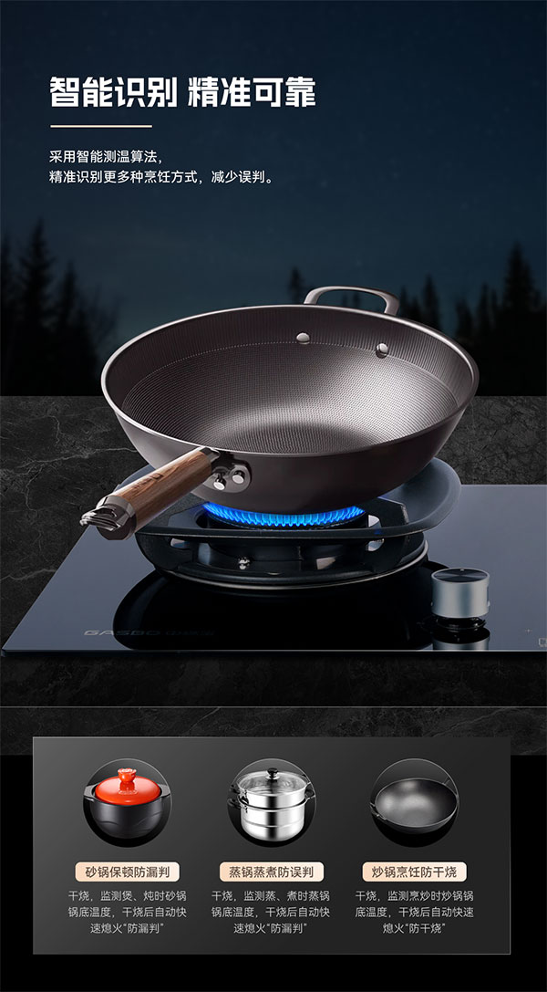 考虑到不同烹饪场景和不同材质的锅具在识别时的困难,中燃宝Q6521特别针对不同烹饪场景做了“精准适配”,并完美适配市面上的常见锅具。