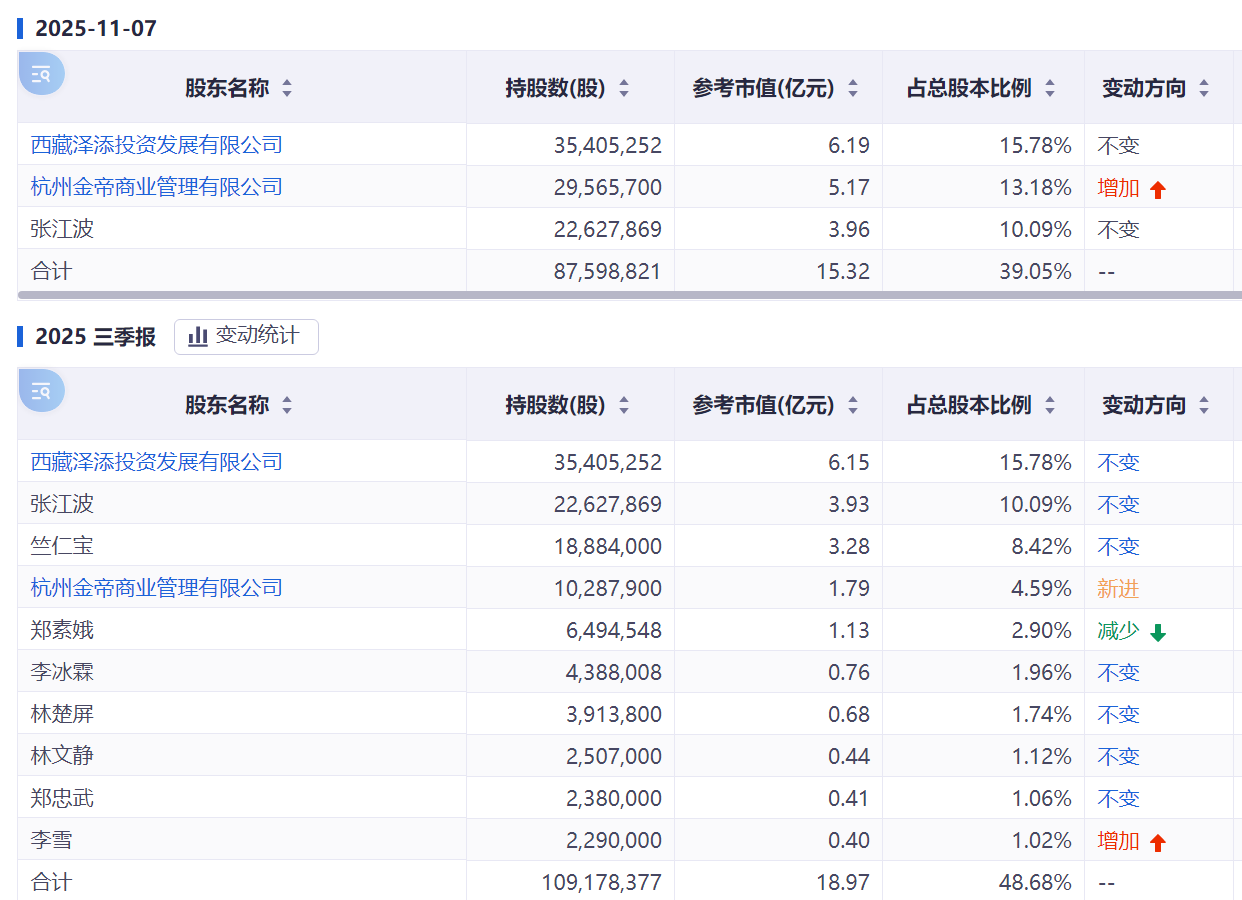 公开资料显示,2025年7-10月,金帝商业累计增持宁波中百超1000万股,成本区间12.42-17.10元/股。