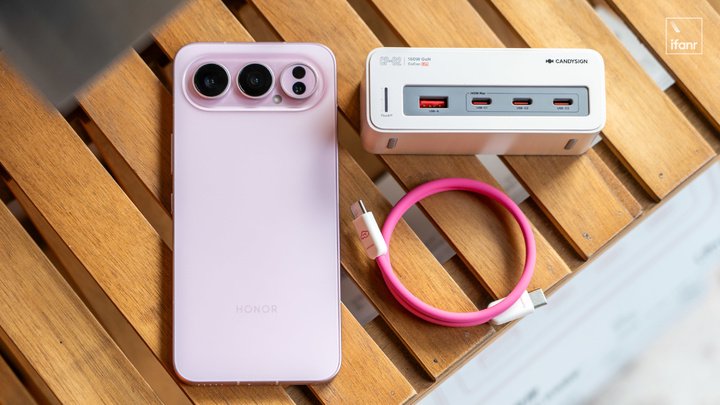 充电组合的部分,荣耀 500 全线支持 80W 有线快充,500 Pro 增加了 50W 无线快充,实测通用快充也能够达到 55W PPS,充电支持比较全面。