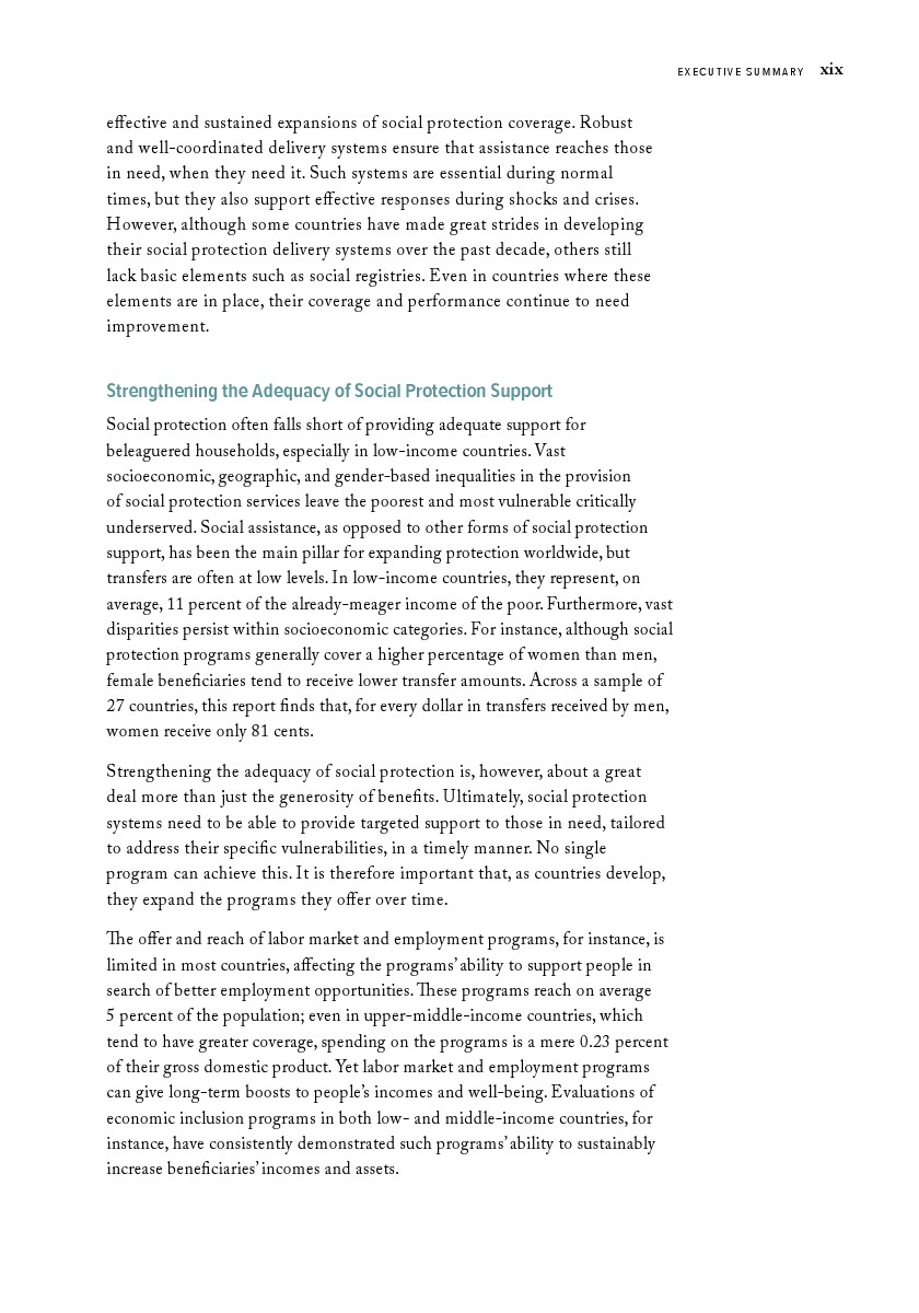 但前路依然漫长。尽管取得重大进展,对许多人而言,社会保障仍停留在愿景而非现实。按当前增速估算,极端贫困人口实现全面覆盖还需18年,而中低收入国家最贫困的20%家庭全面覆盖则需20年。低收入国家形势尤为严峻——即便覆盖率大幅提升,其社保体系平均仅能覆盖1/4人口。即便是中低收入国家,社保体系也未覆盖超半数国民。
