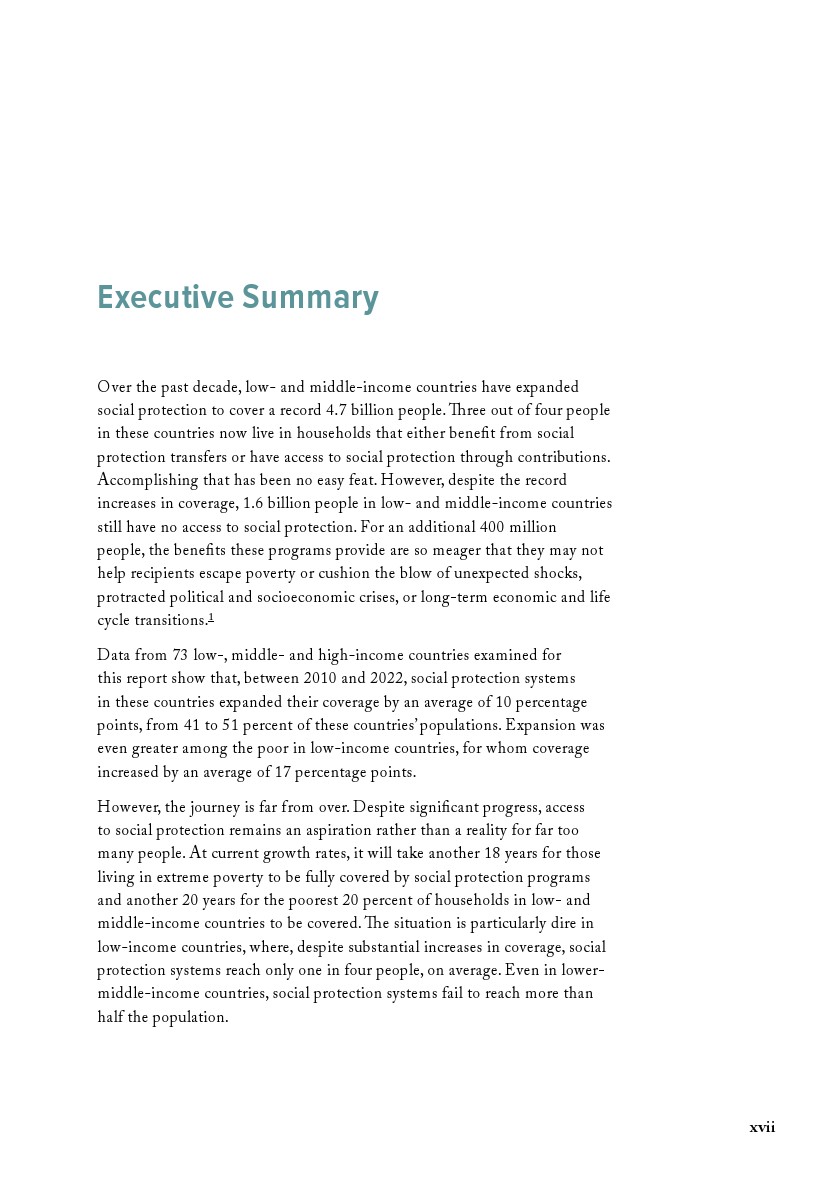 本报告涉及的73个高、中、低收入国家数据显示,2010至2022年间,这些国家的社会保障体系平均覆盖率提升了10个百分点,从占人口41%增至51%。低收入国家贫困人口的覆盖率增幅更为显著,平均提高了17个百分点。