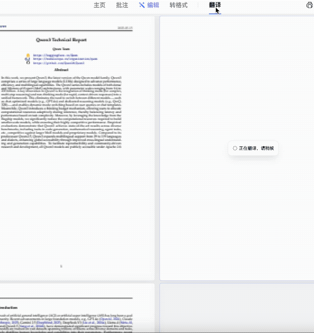 如果你的日常就是跟一摞摞 AI 技术论文打交道,英文不是很好,我们可以让「千问侧边栏」直接翻译、并总结核心观点。甚至让千问基于文档内容继续深挖准问,完全不用复制-粘贴-复制,也不用离开当前的标签页。