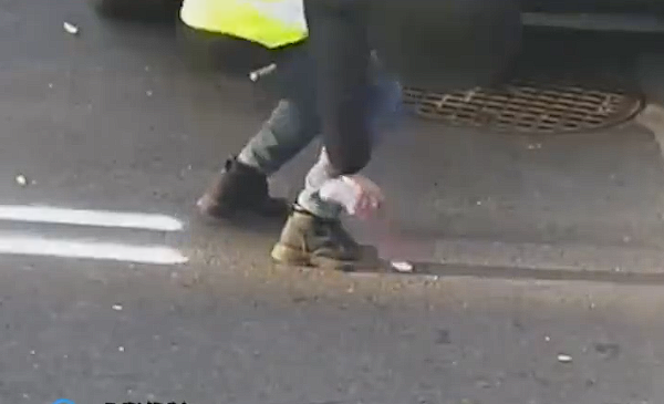 然而由于绘制粗糙,一眼就被交警识破,而公共监控也拍下了他“作案”的全过程。