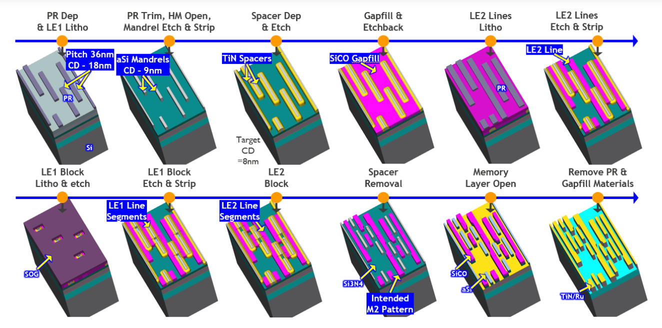 在N3节点,金属间距尺寸必须在18纳米或以下,主要的互连挑战之一是确保足够的工艺裕度以应对CD和边缘布置误差(EPE)。