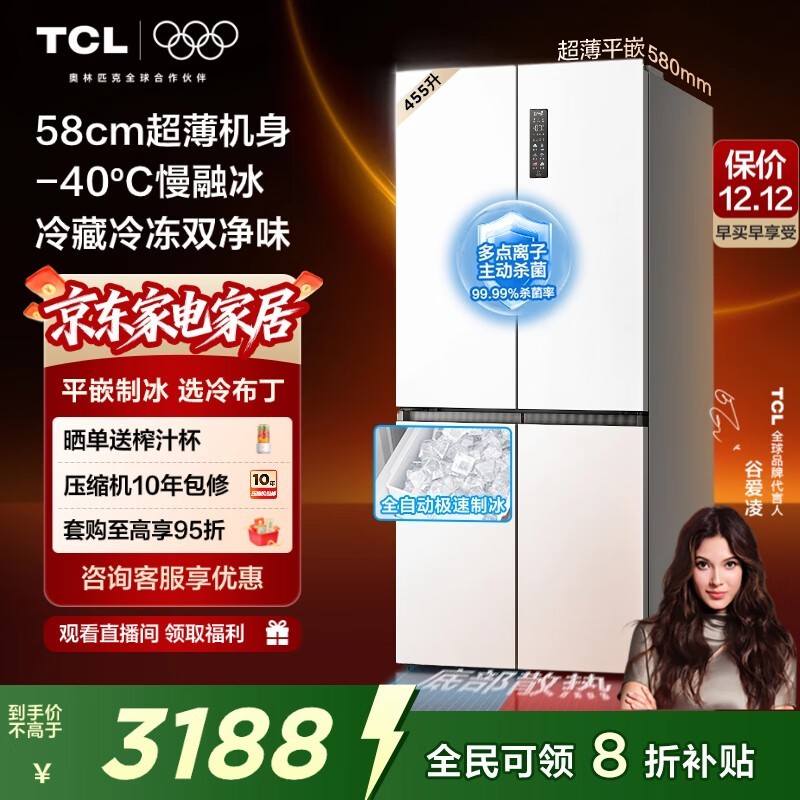 TCL冷布丁R455T9-UQB冰箱低价来袭