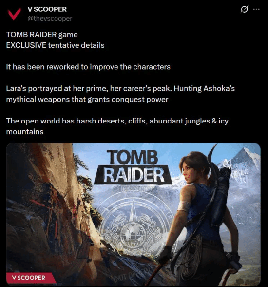 据知名爆料人V Scooper透露,该项目经过深度重制后,将呈现处于职业生涯巅峰期的劳拉·克劳馥。