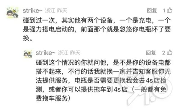 但有车主却中招了,车主称,师傅过来搭电时,搭电宝接上电瓶,一开始启动了,但师傅走后车辆又启动不了了。师傅过来说,电瓶坏了需要更换,无奈之下自己更换了一个电瓶。