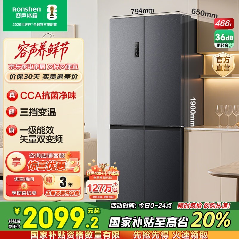 容声466L风冷冰箱1871元
