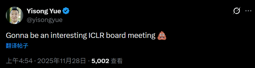 加州理工学院计算机与数学科学教授,ICLR 理事会成员,ICLR 2025 的主席 Yisong Yue 表示,咱们现在要开个会,我已经麻了。