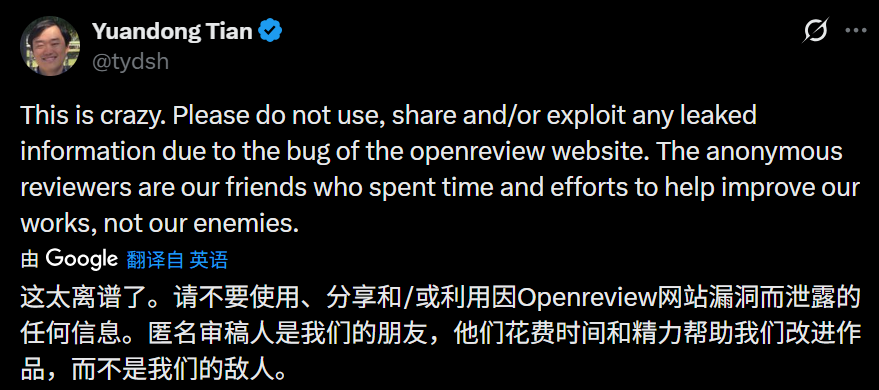北京时间 11 月 27 日晚,国内 AI 社区全数炸锅。在学术论文审稿最常用的 OpenReview 平台上,一个前端 bug 导致数据库泄露,让原本的双盲评审变成了明牌。
