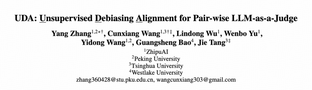论文标题:UDA: Unsupervised Debiasing Alignment for Pair-wise LLM-as-a-Judge