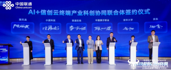 在大会接近尾声的时候,“AI+信创云终端产业科创协同联合体”开启了第三次合作签约。联通在线信息科技有限公司副总经理秦吉波代表联合体发起单位与中国狮子联会、清华大学深圳国际研究生院、京东、小度科技、楚天龙5家新增成员单位代表进行签约,联通在线总经理周澄华、北京市科协副主席王美艳等见证签约仪式,至此,联合体成员单位经三次扩容,由首批14家发展为31家,规模持续壮大。
