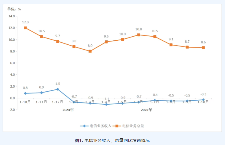 具体来看,2025年1-10月上海市电信业务收入累计完成597.1亿元,同比降低0.3%,低于全国平均增速(0.9%)。按照上年不变单价计算的电信业务总量为543.9亿元,同比增长8.6%,低于全国平均增速(9.0%)。同时,2025年1-10月上海市电信利润总额累计达到96.6亿元,同比增长6.9%。电信利润增幅呈现收窄。