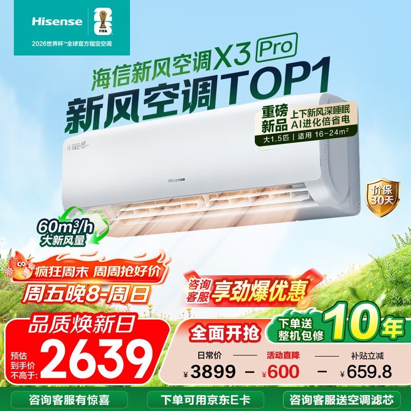 海信1匹空调2024元抢