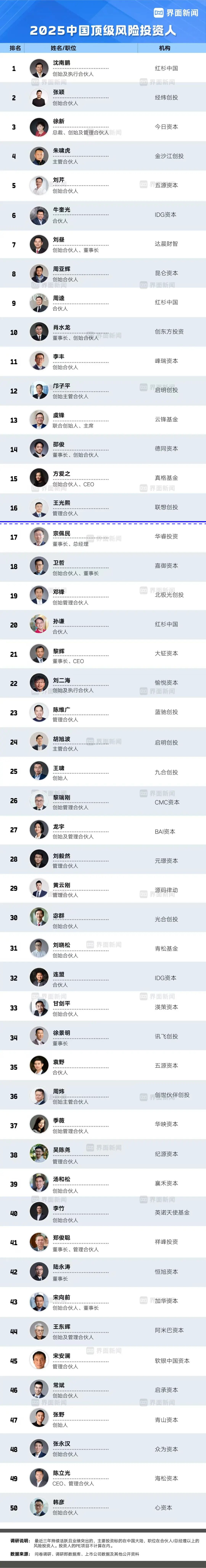 「中国顶级风险投资人」及「中国顶级风险投资机构」榜单致力于为创业者、母基金(FOF)及有限合伙人(LP)呈现中国创投生态的真实力量版图。本次调研聚焦于识别那些在复杂经济环境中精准把握机遇、对创新趋势拥有深刻洞见与强大领导力、并为创业者提供卓越价值的顶尖投资人/投资机构。为捕捉最新动态,榜单特别关注机构近三年表现,包括新投项目参与度与贡献度(35%)、退出项目参与度与贡献度(35%)、管理规模及行业位置(30%),以发现业界最具活力与成长性的新锐力量。