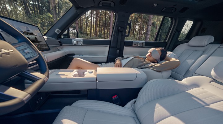 钛 7 放弃了使用场景有限的第三排,选择将空间资源完全释放给核心的一、二排。2920mm 的轴距,为钛 7 带来了高达 70.9% 的乘员舱「得房率」,确保了前后排乘客都能获得宽裕的腿部和头部空间。