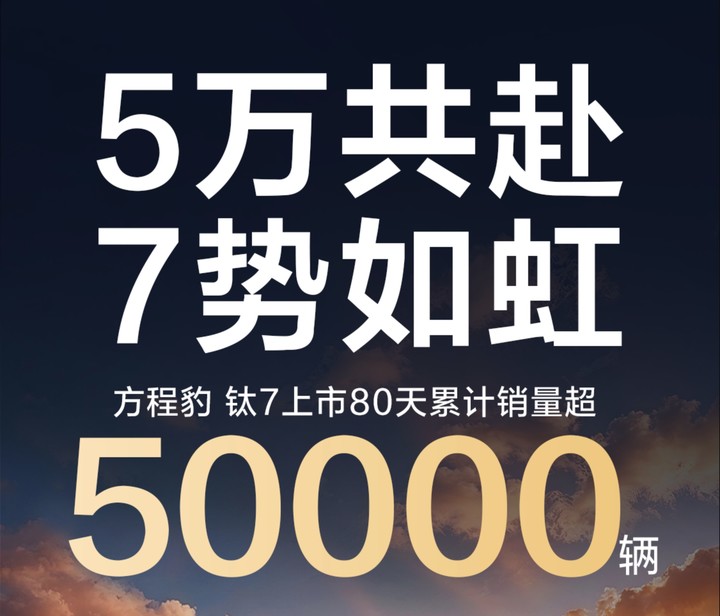 2025 年 11 月 27 日,方程豹官方宣布,旗下全新车型钛 7 上市仅 80 天,累计交付量已突破 5 万辆。