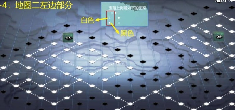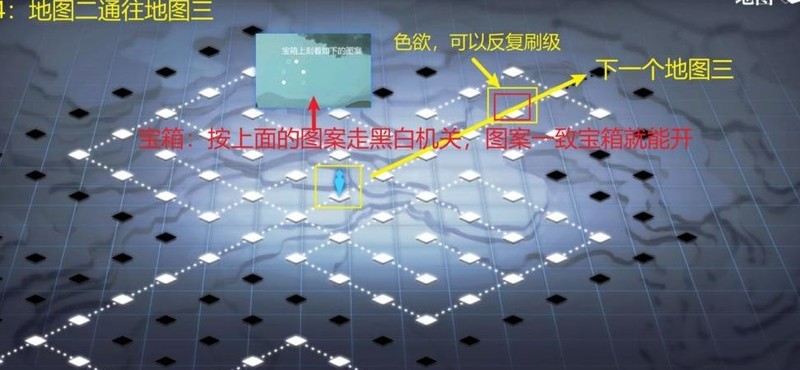 地图二:根据图例踩踏地板机关形成指定图案即可开启宝箱。