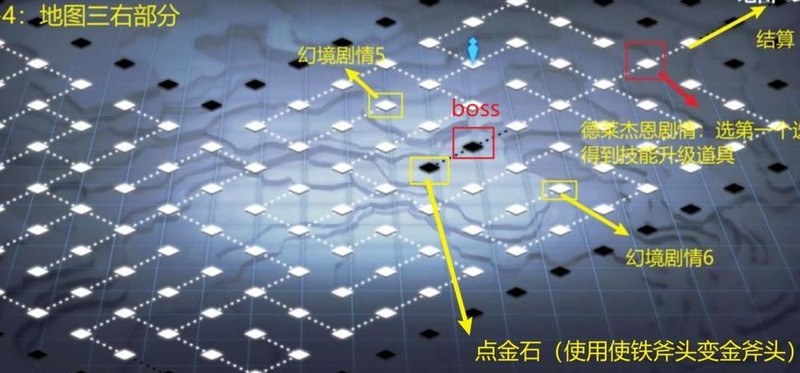 拥有点金石后,可用其将斧头镀金,随后返回0-2区域砍树,此前显示异样树木的位置即可触发后续事件(具体位置参考0-2攻略图示)。