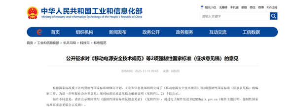 就在上个月,工信部在官网上发布了一则专门针对移动电源的国标 —— 《 移动电源安全技术规范 》的征求意见稿。
