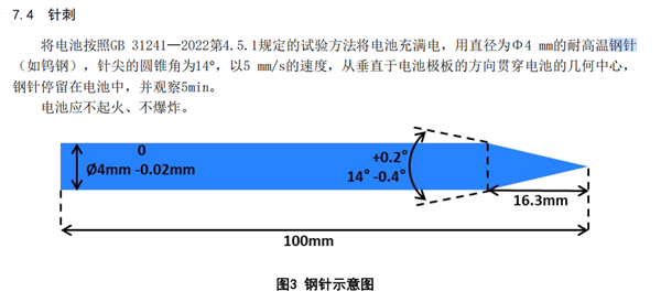 新国标中,关于针刺测试的具体要求